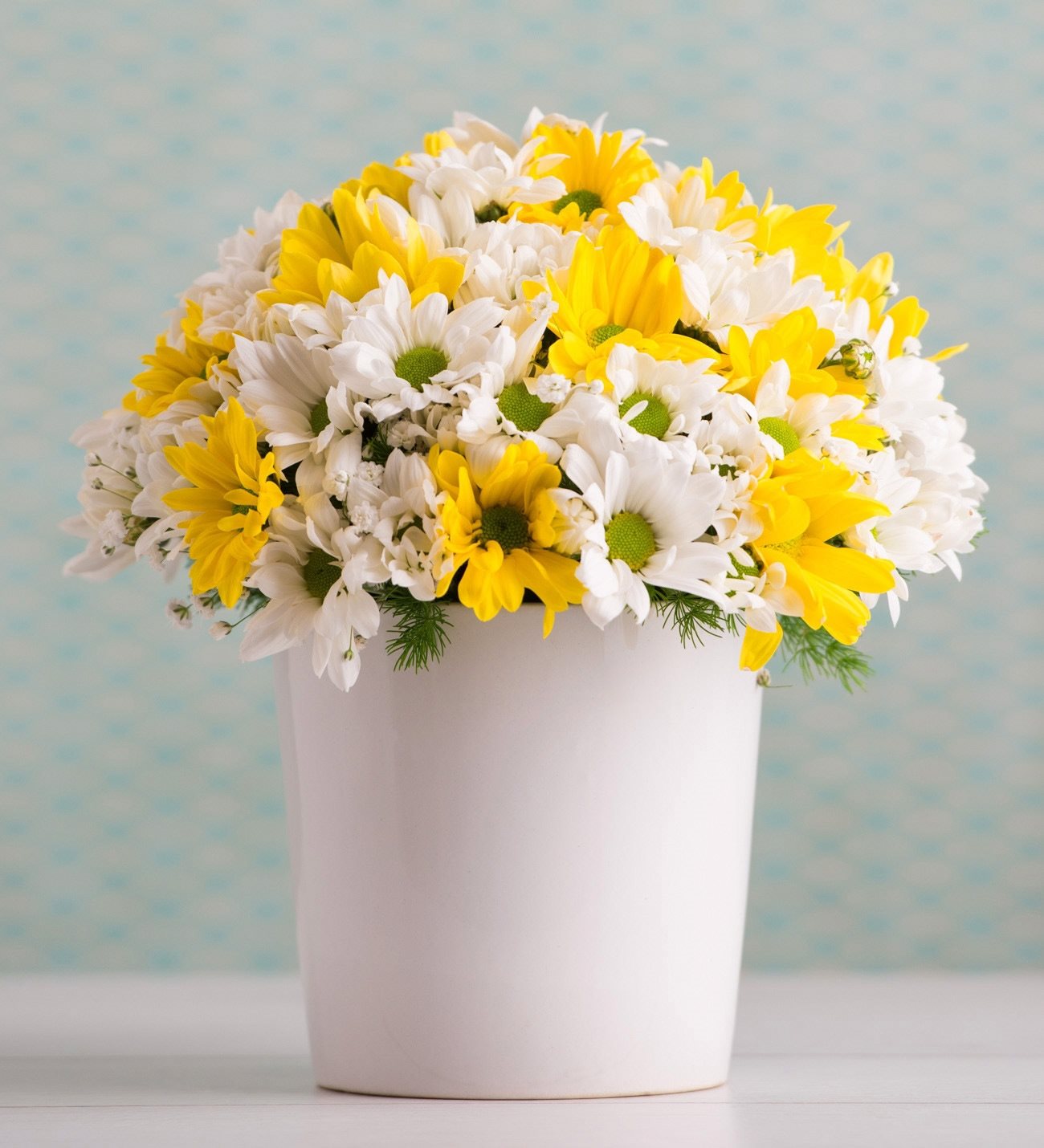 تنسيق زهور مع وعاء سيراميك